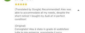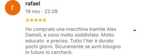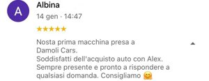 Salve mi chiamo Alex Titolare della Damoli Cars IN ZONA VALPOLICELLA, VERONA. un’Azienda giovane e dinamica con personale con esperienza pluriennale nel mondo della compravendita di autoveicoli. L’ufficio si trova a Negrar in via Camarele n.25 , dove troverete affidabilità e professionalità del personale. Il cliente potrà visionare tutti i nostri veicoli in vendita su tutte le piattaforme On-line. Damoli Cars è un punto di riferimento per chi è alla ricerca di un’auto usata…ma sicura, o se alla ricerca di auto nuova gratuitamente eseguiamo assistenza sull’acquisto anche presso altri concessionari.